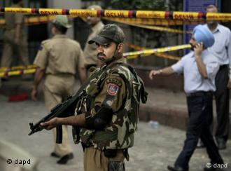 Police cordon off the site of a bomb blast outside the high court in new delhi september 7, 2011.